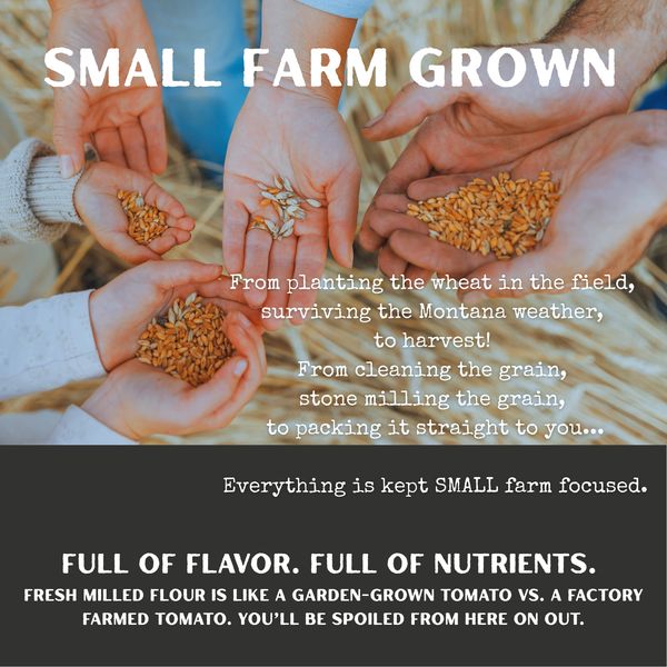 This flour--grown & milled right here in small town Montana--brings the FLAVOR & the nutrients back! Fresh-milled flour is unlike anything from the big-box stores.